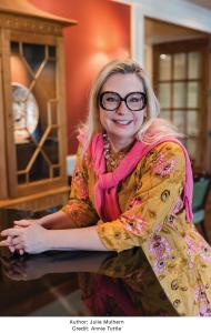 USA Today bestselling author Julie Mulhern is a Kansas City native who grew up on a steady diet of Agatha Christie. She spends her spare time whipping up gourmet meals for her family, working out at the gym, and finding new ways to keep her house spotlessly clean. Truth is, she’s an expert at calling for take-out, she grumbles about walking the dog, and the dust bunnies under the bed have grown into dust lions. Action, adventure, mystery, and humor are the things Julie loves when she’s reading. She loves them even more when she’s writing! Sign up for Julie’s newsletter at juliemulhernauthor.com.